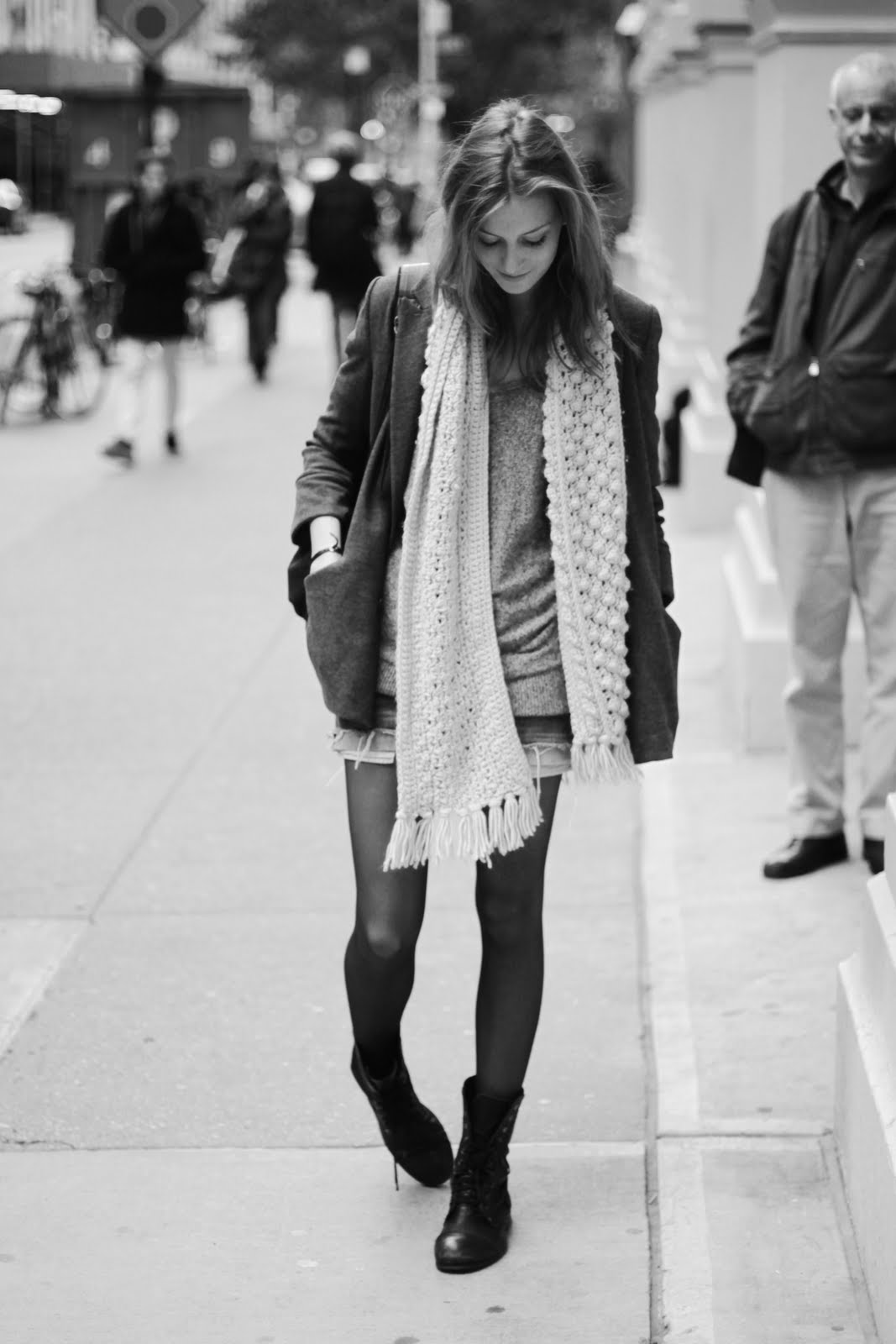 click on the black and white pic for a larger view and look at the cool pattern on the scarf!